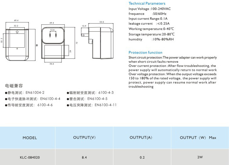 短路保護: 電源適配器在短路解除時能正常工作恢復(fù)